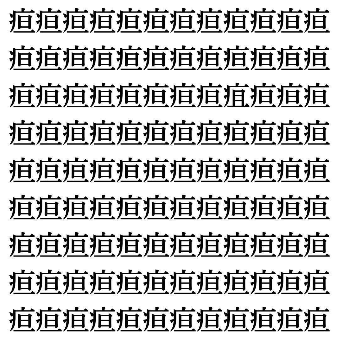 たくさん並んだ同じ漢字の中に、一つだけ違う漢字がまぎれています。仲間外れはどの漢字かわかりますか?