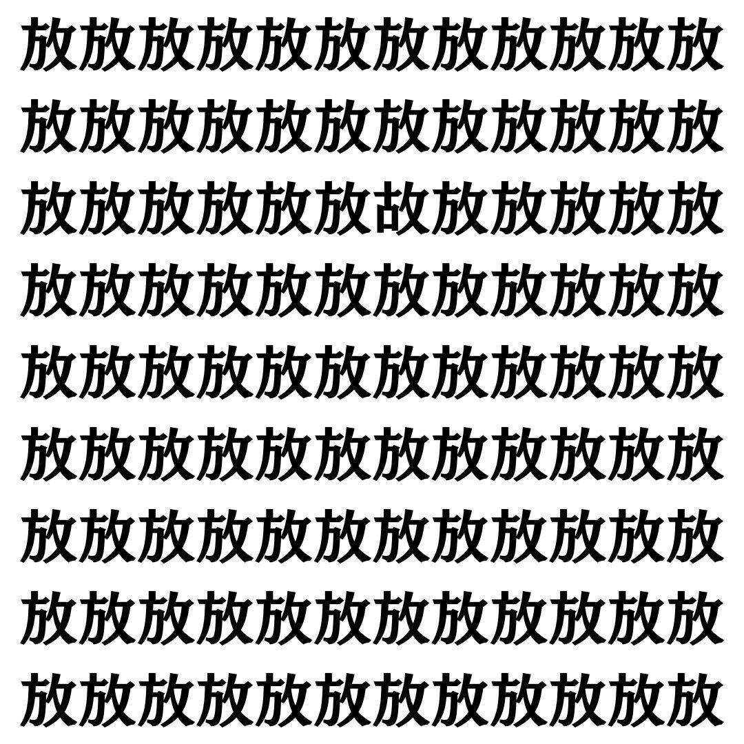 たくさん並んだ同じ漢字の中に、一つだけ違う漢字がまぎれています。仲間外れはどの漢字かわかりますか?