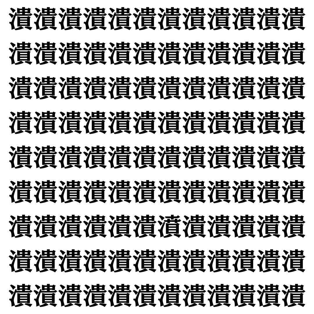たくさん並んだ同じ漢字の中に、一つだけ違う漢字がまぎれています。仲間外れはどの漢字かわかりますか?