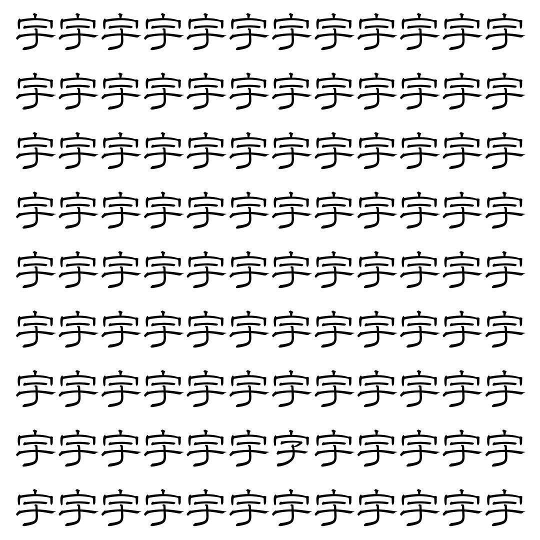 たくさん並んだ同じ漢字の中に、一つだけ違う漢字がまぎれています。仲間外れはどの漢字かわかりますか?