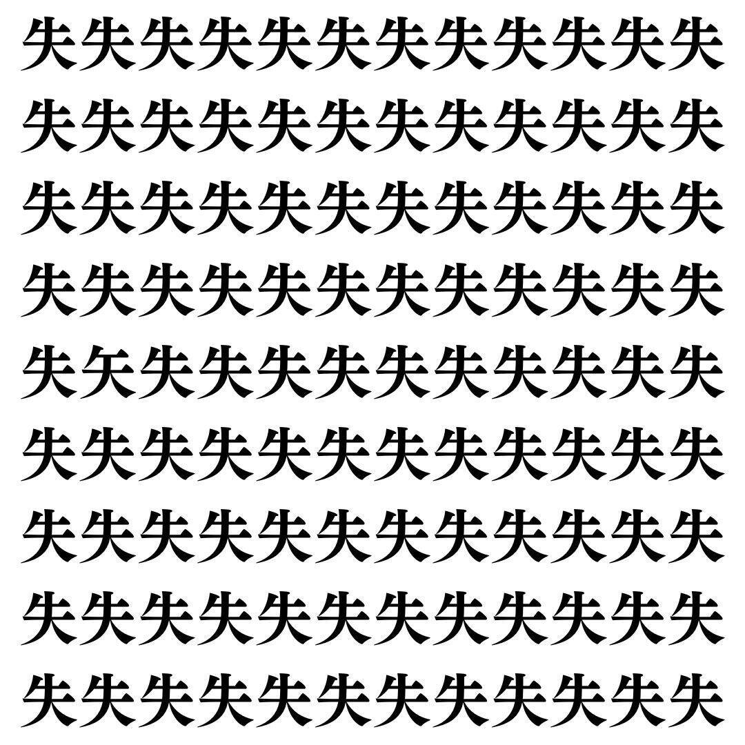たくさん並んだ同じ漢字の中に、一つだけ違う漢字がまぎれています。仲間外れはどの漢字かわかりますか?