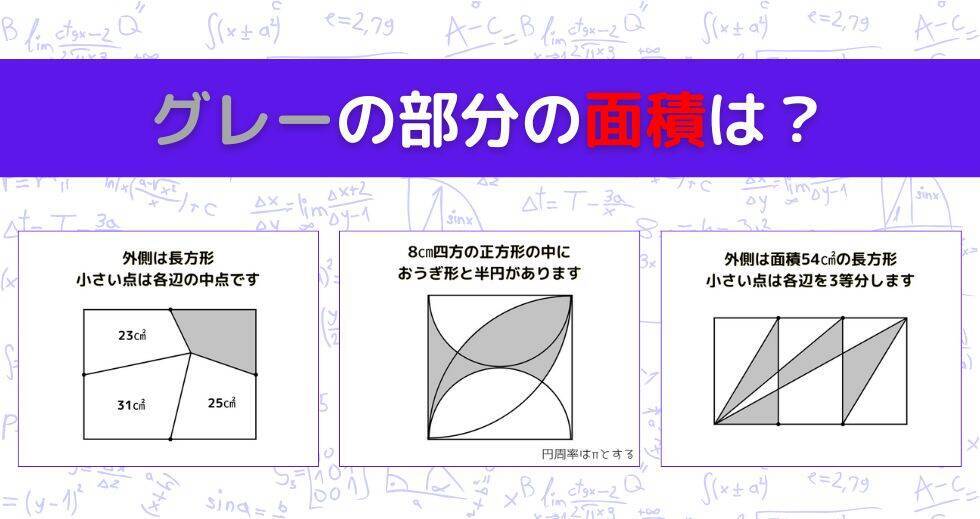 全3問! 図中のグレーの部分の面積は?