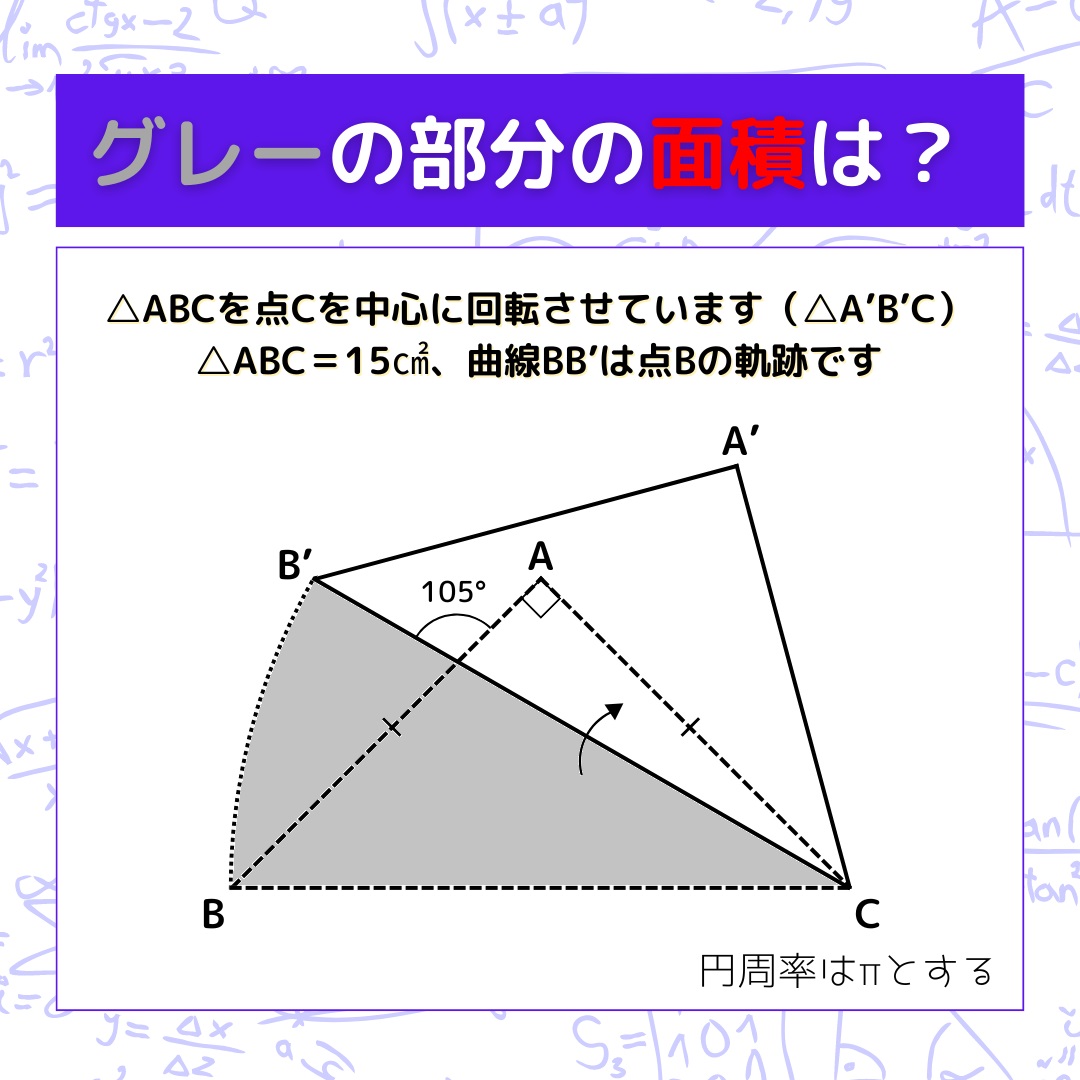 【図形問題】グレーの部分の面積を求めよ!<Vol.1114>