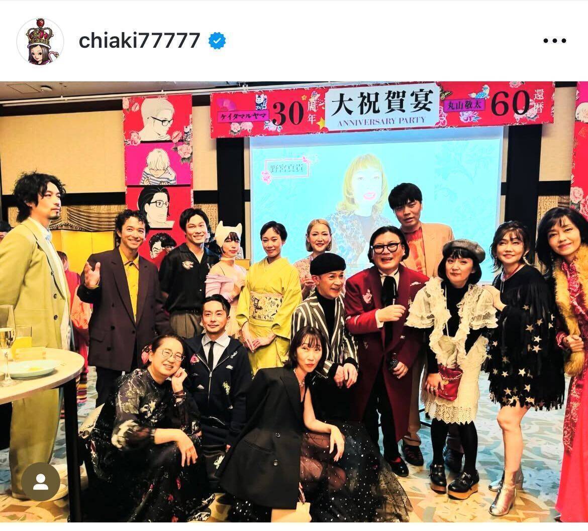タレントの千秋が、ファッションデザイナー・丸山敬太の還暦パーティーに出席したことを自身のインスタグラムで報告した。投稿では、豪華ゲストとの交流や懐かしい再会の様子が綴られている。
