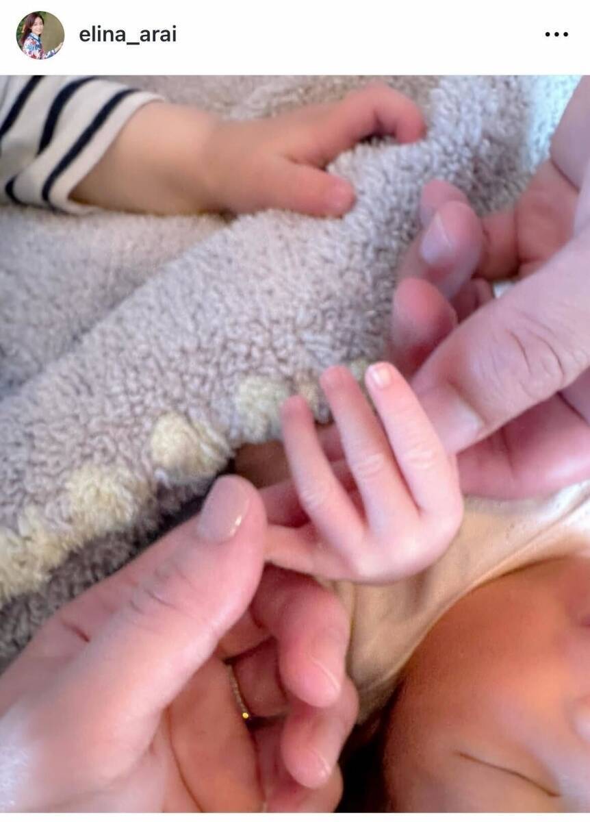 フリーアナウンサーの新井恵理那がインスタグラムで第二子誕生の喜びを報告した。大型連休中の近況として、「先日、第二子を出産しました」と述べ、ふわふわとした生まれたての命に包まれた幸せな時間を綴った。