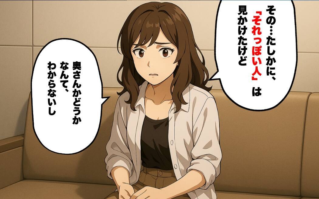 陽菜さんは、穏やかな口調でそう言った。でも、私の心臓は一気に早鐘を打つ。(……誰に?どこから…?)「その……たしかに、“っぽい人”は見かけたけど」「奥さんかどうかなんて、わからないし」声が震えていた。...