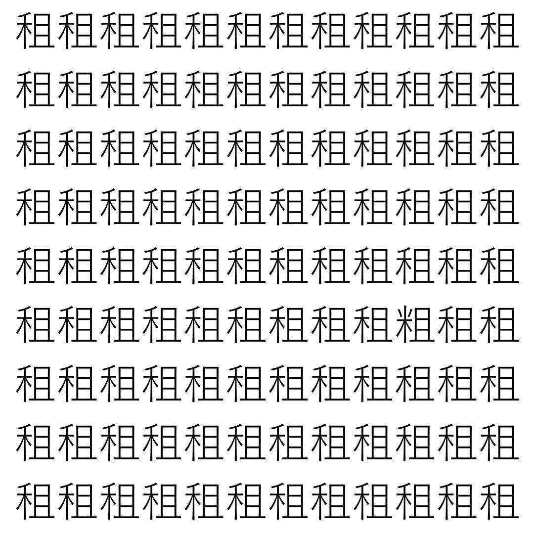 たくさん並んだ同じ漢字の中に、一つだけ違う漢字がまぎれています。仲間外れはどの漢字かわかりますか?
