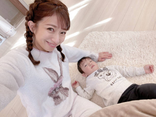 そんな辻は、翌日の17日にも「今日も朝は寒くてなかなか皆 起きてくれなかったけど 何とか出発!!」「そして僕も床暖房のトリコです」といったコメント共に、絨毯の上で寝ころぶ三男とのツーショットなどを2枚投稿。