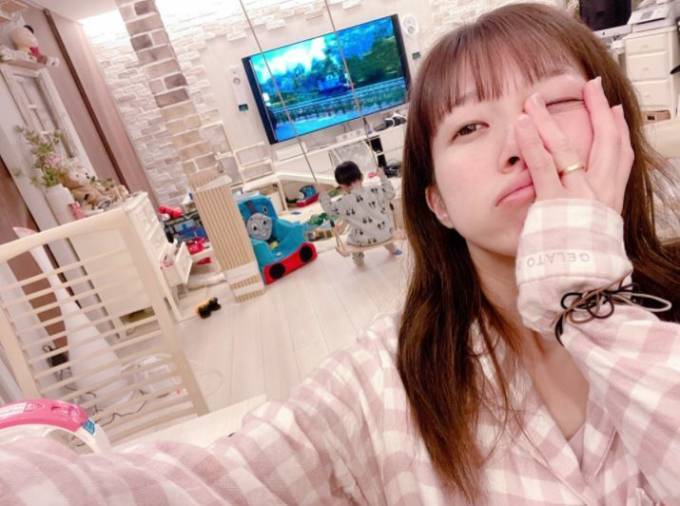 続けて、「部屋が超~散らかってるけど とりあえず今は見て見ぬフリ」「ははは」と、オモチャなどが広がった部屋を背景にした自撮りを掲載していた。