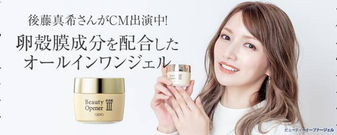 後藤真希さんが、卵殻膜について分かりやすく説明しながら、ハリ・うるおいあふれる肌へ導くオールインワンスキンケア『ビューティーオープナージェル』の魅力を紹介する。