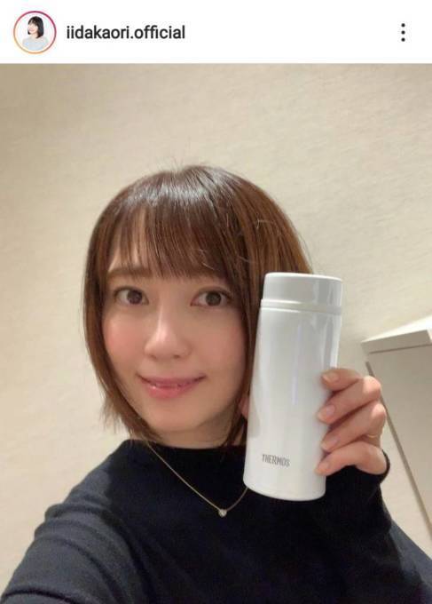 飯田は、自身のInstagramアカウントにて、「マイボトルを持ってお仕事です」「中はあたたかい緑茶 カテキンがとてもよいみたいですよ」とコメントし、白のマイボトルを持った自撮り写真を公開した。