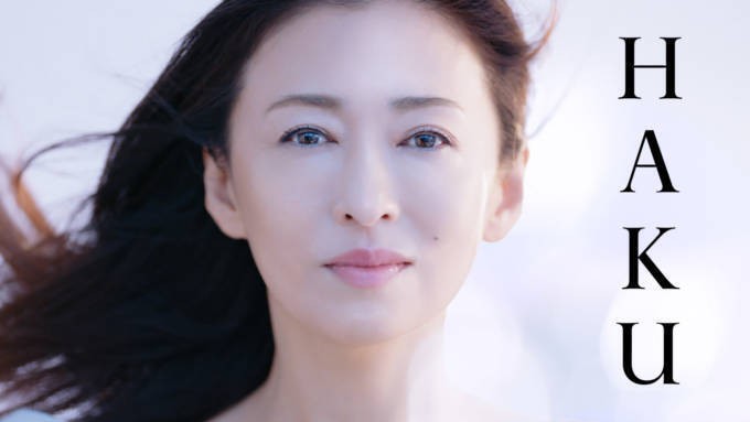 松雪泰子さんの美しい肌と堂々とした表情により、HAKUの目指すうるおいに満ちた明るく澄んだ透明感のある肌やシミ悩みから解放され何事にも前向きにチャレンジできる女性像を表現した。