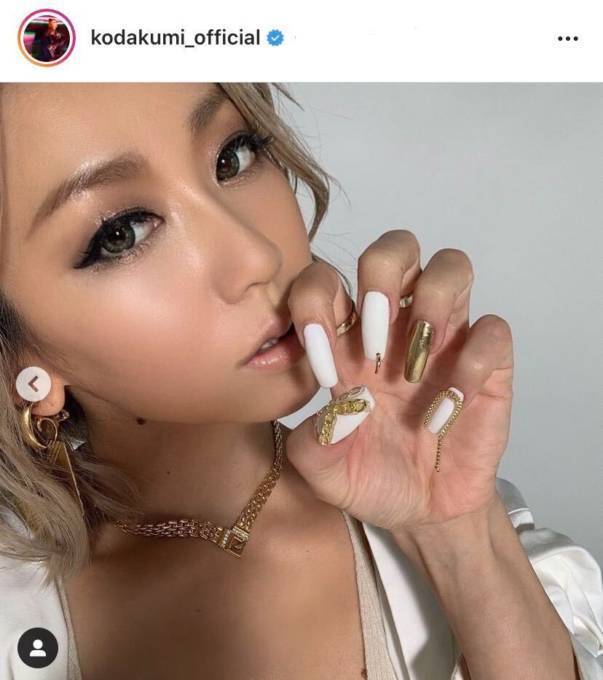 また、3月20日の投稿では、「NAIL UP! vol.100 5月号ボーイッシュバージョン!!」「ネイルにKって、チェーンで入れてもらったよん!」と綴り、同コーディネートの倖田がホワイトとゴールドのネイルが施された手元を見せるようなポーズをとった写真なども公開していた。