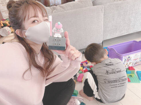 続けて、「アンパンマンやバイキンマンは オモチャとしても売ってるけど 歯磨きマンは見た事なくてお菓子売り場でしか買えないイメージで ずっと探してたの !!」「後一個だったから lucky」と喜びを覗かせ、玩具を持った自身と、三男の後ろ姿が写った写真を2枚公開していた。