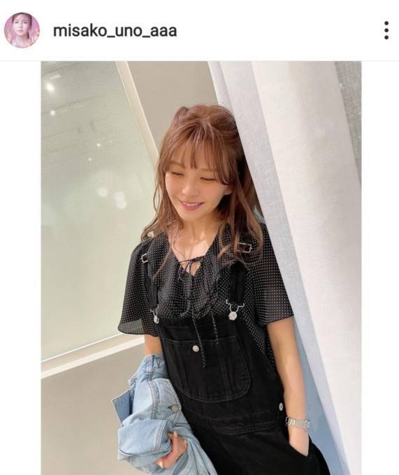 宇野は、自身のInstagramにてアカウントにて、「私服デス」「@lavanda.jp のドットブラウスと @something_jean のサロペ」「どちらもこれからヘビロテです」というコメントと共にドットのブラウスに黒のサロペットを合わせたコーディネート写真を2枚公開。