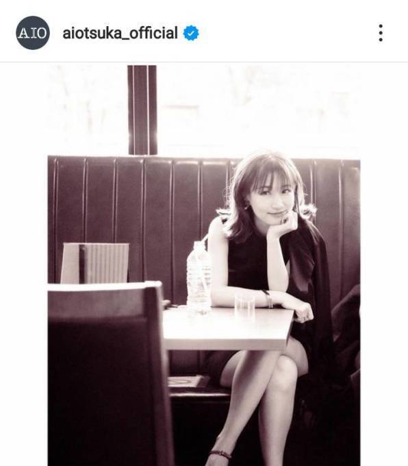 大塚は、自身のInstagramアカウントにて、「あいびきMV オフショット」などのコメントと共に、テーブルに頬杖をついたポーズで微笑を浮かべた、美脚が際立つ写真を公開した。
