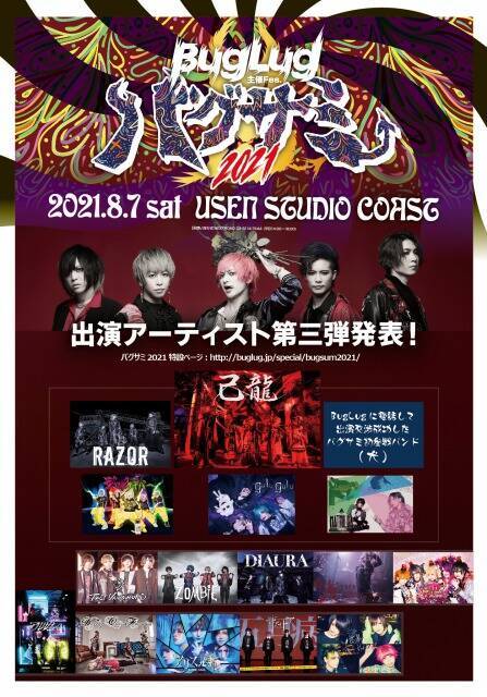 今回出演が発表されたのは「己龍」「RAZOR」「gulu gulu」「ジャックケイパー」「マチルダ」「BugLugに電話して出演交渉成功したバグサミ初参戦バンド(犬)」の6組。