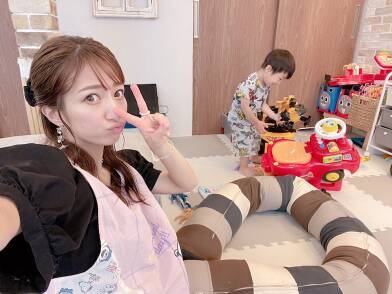 さらに、「そんな今日は久しぶりに 外のみの学校公開 だったので 休み時間だけちょこっと見て来ました」「そして帰宅して お昼ご飯準備して ちょい休憩」と明かし、ピースしている自撮り写真も掲載していた。