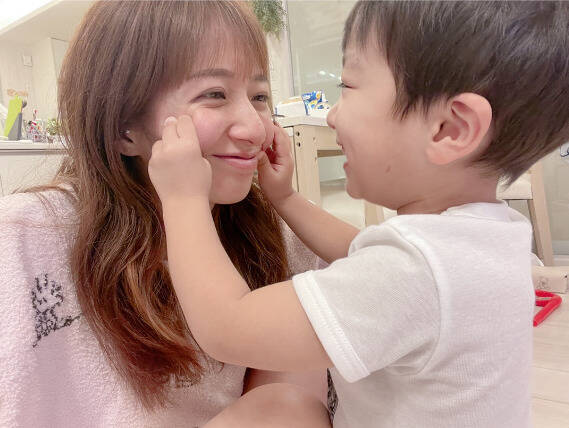 辻は「遊ばれたwww」といったタイトルのブログを更新すると、「ママのお顔で遊ばれ…」といったコメントと共に、三男に頬をつままれている写真を複数公開。
