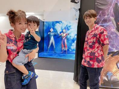 さらに、「本物に初めて会った幸空は ビックリして一緒に写真は撮れなかったけど この距離で」「バイバイでき」「ウルトラマンショーも 真剣に見ることが出来ました」などと綴って、親子の3人ショットや、少し離れた距離からウルトラマンに手を振る三男の姿などを掲載した。