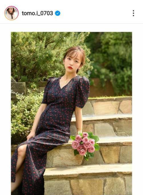 また、同日更新の別投稿では、「重厚感ある生地に拘りました」「サラッと着れるけど、しっかりしてる。」と、ワンピースのこだわりも明かしつつ、ピンクのバラの花束を持って柔らかい表情を見せる写真も複数掲載した。