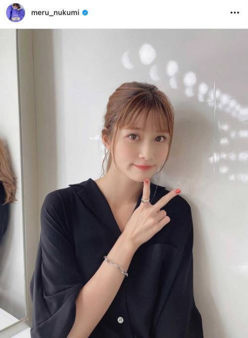 めるるは自身のInstagramアカウントにて「オナカスイターーー」「この時間、食べるか迷」「#めるのふく」といったコメントやタグと共に、鮮やかなオレンジカラーのネイルでピースをした姿を公開。