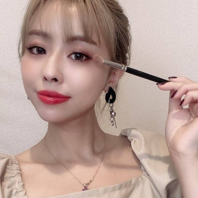 チークのポイントを下げたほうが大人っぽく見えるので、秋らしい落ち着きのある雰囲気になります♪