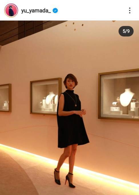 山田は、自身のInstagramアカウントにて「Cartier Salon Tokyo」「ハイジュエリーを中心とした ジュエリーウォッチの数々 カルティエの卓越した独自の職人技を堪能させて頂きました」などと綴りつつ、美脚が際立つブラックのミニ丈のノースリーブワンピースを着用し、ジュエリーを眺める姿などを公開。