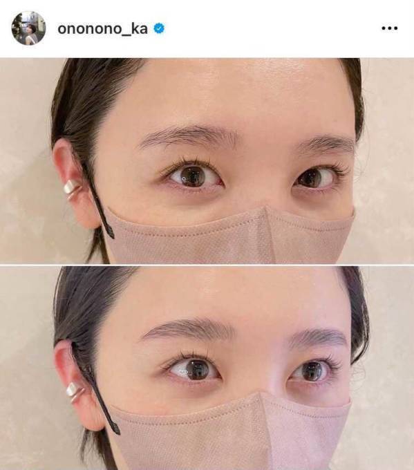 おのは、自身のInstagramアカウントにて、「出産前にどうしてもやっておきたかった #hollywoodbrowlift」と切り出し、「私の眉毛は1本1本しっかりしている上に生え癖がすごくて すっぴんでも可愛いふんわり眉毛に ずーっと憧れていました、、」「まゆげの癖を取る専用のパーマをして、整えてもらって、 できあがりに大感動」とコメントして、眉毛パーマのビフォーアフターの写真と、施術中の写真を公開した。