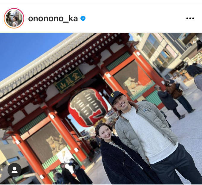 おのは自身のInstagramアカウントにて、「先日、誕生日を迎え30歳になりました。」「お義母さんが娘をみてくれるというお言葉に甘えて、夫と浅草へ」と報告すると、夫である水泳の塩浦慎理選手と浅草で撮影したツーショットなどを複数公開した。