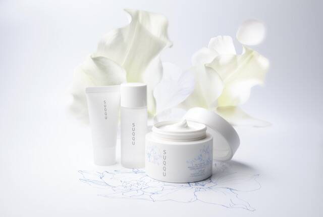 SUQQUのスキンケアメソッドを支える“骨格”となる「デザイニング マッサージ クリーム」が、限定の香り「純白花香」を纏いキットとして登場する。