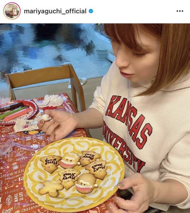 矢口は、自身のInstagramアカウントにて、「クリスマスはなんかクッキー作りたくなって 久しぶりに作ってみたよ」「チョコペン難しくて文字読めない問題w」「でも息子が沢山食べてくれて嬉しかったなぁ♪」といったコメントと共に、手作りクッキーにチョコペンでデコレーションしている様子を公開。