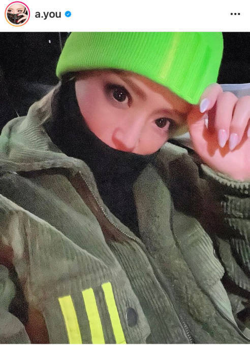 続けて、「あの日以来の聖地にやっと戻って来れた。」「そんなん、全力で楽しみ尽くして暴れたおすしかないでしょーーー」と意気込みを語りつつ、「まずは12月30日、2021年のAsia tour納めをお見逃しなくっっ!!!!」「#ayuasiatour20212022 #yoyogi #聖地代々木」などのコメントやハッシュタグと共に、鮮やかな蛍光カラーのニット帽や、グリーン系のカラーのアウターを着用した写真を公開。