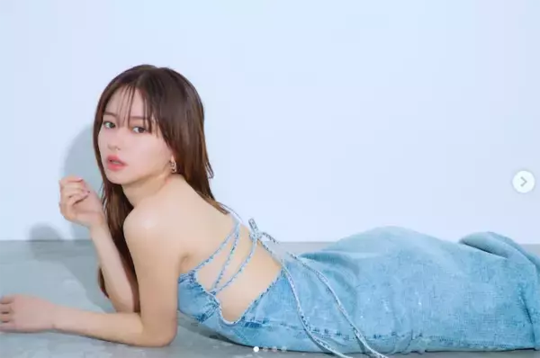 山本は23日、Instagramを更新。背中を大胆に露出したデニムワンピース姿と赤いトップスでのへそ出し姿を披露した。