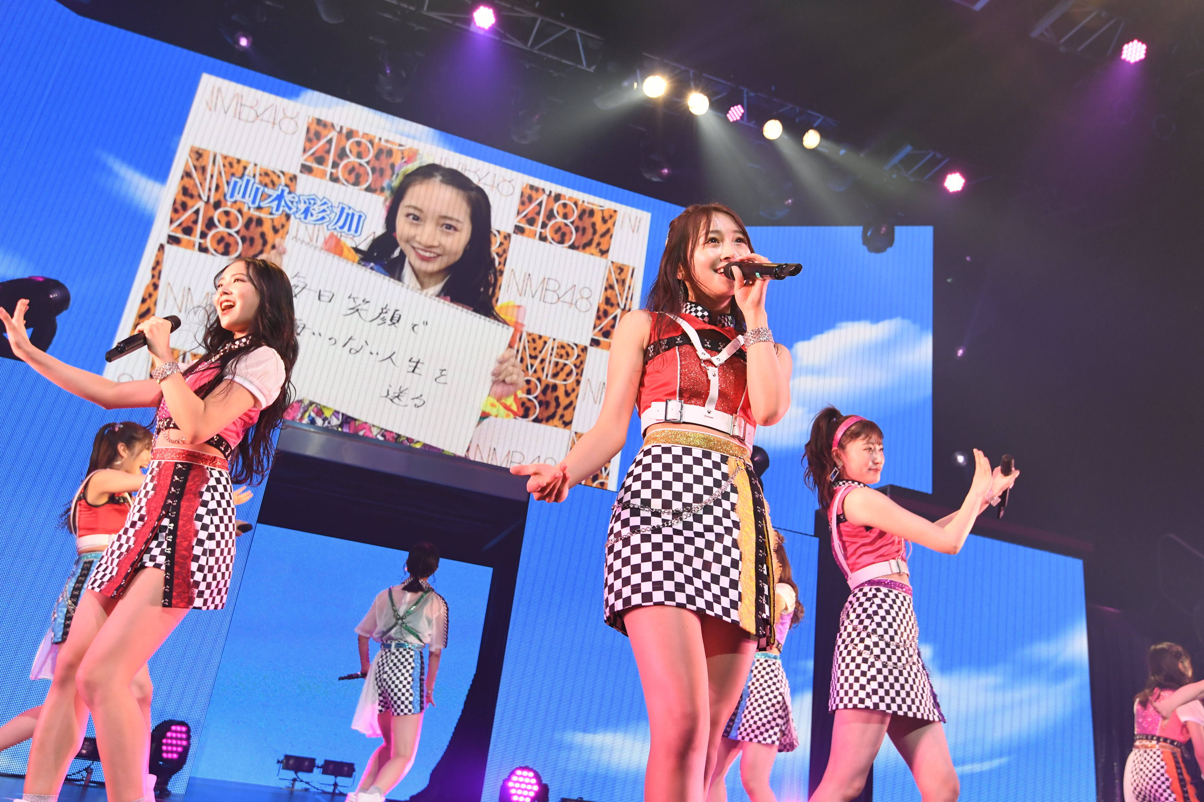 センターを小嶋が務め、その両脇を1期生の白間と吉田が固める、次の夢へと向かう今のNMB48を象徴するかのようなフォーメーション。曲中の「頑張れ!」というセリフを小嶋は「頑張ろう!」と替えて呼びかけ、その思いに気づいた会場との一体感が早くも高まる。