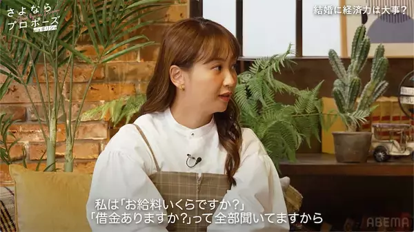 2組のカップルの決断を見届けた後のスタジオトークでは、「結婚に経済力は大事か?」という話に。藤本は結婚前に「お給料いくらですか?借金ありますか?って全部聞いた」「それでどうこうするとかないけど大体年収いくらですか?って聞きました」とあっけらかんと明かす。