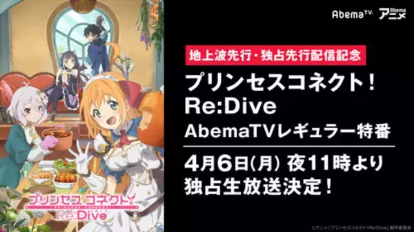 AbemaTVは、Abemaアニメチャンネルにて、4月6日(月)の夜11時より特別番組『アニメ「プリンセスコネクト!Re:Dive」AbemaTVスペシャル特番~1話放送直前でやばいですね☆~)』を独...