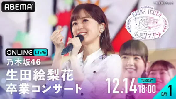 新しい未来のテレビ「ABEMA」は、「ABEMA PPV ONLINE LIVE」にて、人気アイドルグループ・乃木坂46による生田絵梨花の卒業公演『乃木坂46 生田絵梨花 卒業コンサート』をDAY1は12月14日(火)18時00分(開場17時00分)より、DAY2は12月15日(水)18時00分(開場17時00分)より、生配信することを決定した。