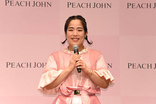 ピーチ・ジョンの新しい顔として今年のブランドミューズに選ばれた2人は、スタイリストの飯嶋久美子が手がけたピンク色のドレスを身に纏い登場。佐藤は「ゆりやんさんと私、それぞれのハッピーを相乗効果で伝えていきたい」、ゆりやんは「選んでいただいて光栄です。かわいい下着とはかけ離れたことをやって生きてきたのに、こんなに素敵な機会をいただいて」と喜びを語った。