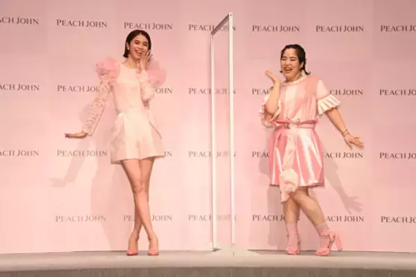 ピーチ・ジョンの新しい顔として今年のブランドミューズに選ばれた2人は、スタイリストの飯嶋久美子が手がけたピンク色のドレスを身に纏い登場。佐藤は「ゆりやんさんと私、それぞれのハッピーを相乗効果で伝えていきたい」、ゆりやんは「選んでいただいて光栄です。かわいい下着とはかけ離れたことをやって生きてきたのに、こんなに素敵な機会をいただいて」と喜びを語った。