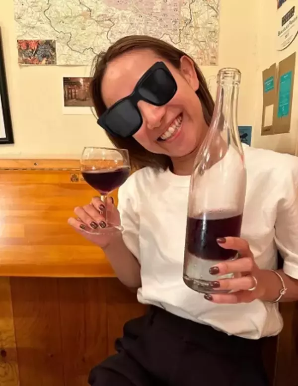 続けて、ワイングラスにワインボトルを両手に持ちながら弾ける笑顔をみせる妻の姿とともに「という事で・・・ワインを飲みに来ております」とつづり、「久々のワインは、やっぱり美味しいですね。そして、ワインを飲んで御機嫌な嫁を見れて良かったです!!」と満足気。
