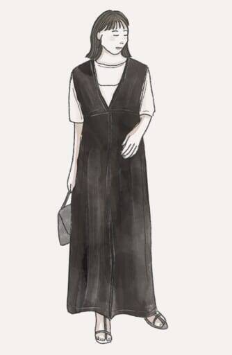 インナー次第でシーズンレスに重宝するジャンパースカート。異なる雰囲気で着られる前後2WAY仕様なら、さらに幅広いスタイリングで活躍できて優秀です。