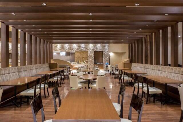 ▲木のぬくもりが感じられるメインダイニング「JURIN GARDEN(樹林ガーデン)」には、ソファ席や窓際席を用意