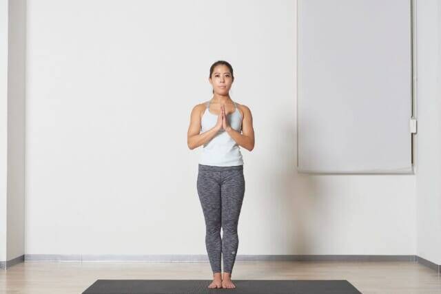 (1)直立して胸の前で合掌する