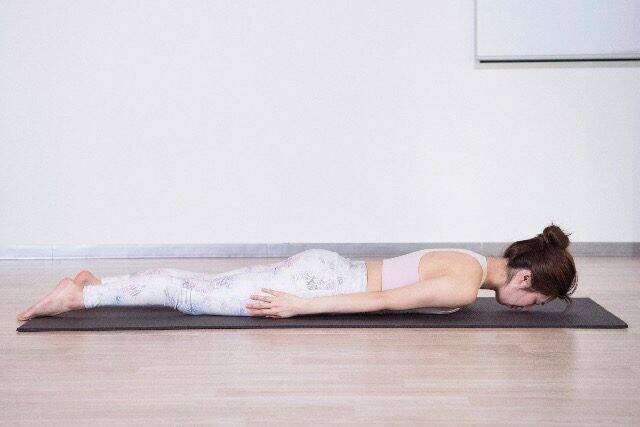 ▲お腹を凹ませて、両腕を体側に置きます