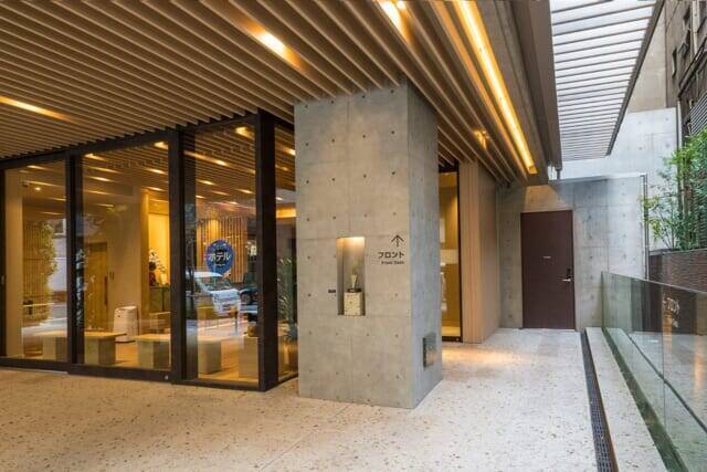 ▲ホテルの入口周辺の床は、大谷石が敷き詰められた上質なたたずまい。駐車場は15台分用意していて、事前予約制で1泊¥3,000です