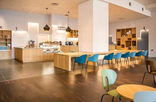 ▲ラウンジの一画にあるOMOカフェ&バルは、朝食のほか、ランチやカフェメニューも用意