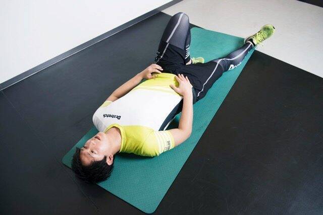 (1)仰向けに寝て左ひざを立てる