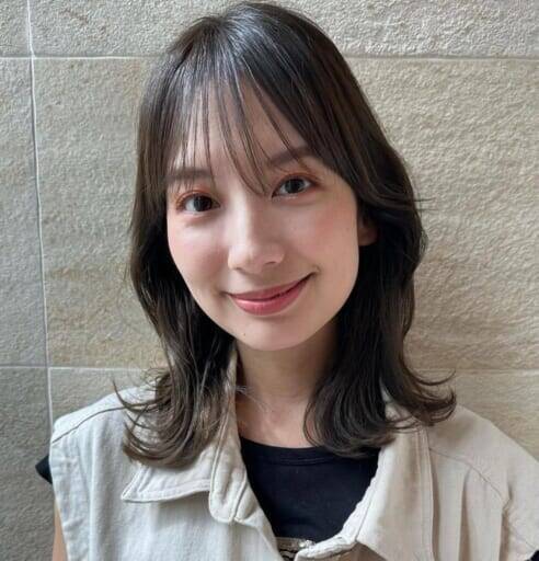 透け感のある前髪を合わせたヘアスタイルは大人っぽさの中にどこか可愛らしさを感じさせる鉄板のヘアスタイルですが、少し変化を出したいなら、毛先にゆるっと動きを出してみましょう。