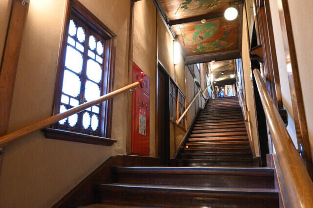 ▲昭和初期の面影を残す木造建築。文化財「百段階段」